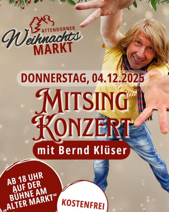 Vom 05.12.-14.12.2025 findet der diesjährige Weihnachtsmarkt auf dem Alter Markt in Attendorn statt. Mehr Infos unter…weiterlesen!